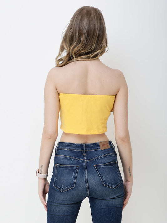 SCORPIUS Women Yellow Solid Tube Crop Top