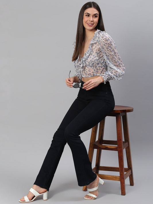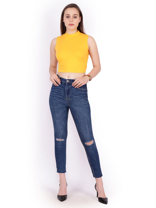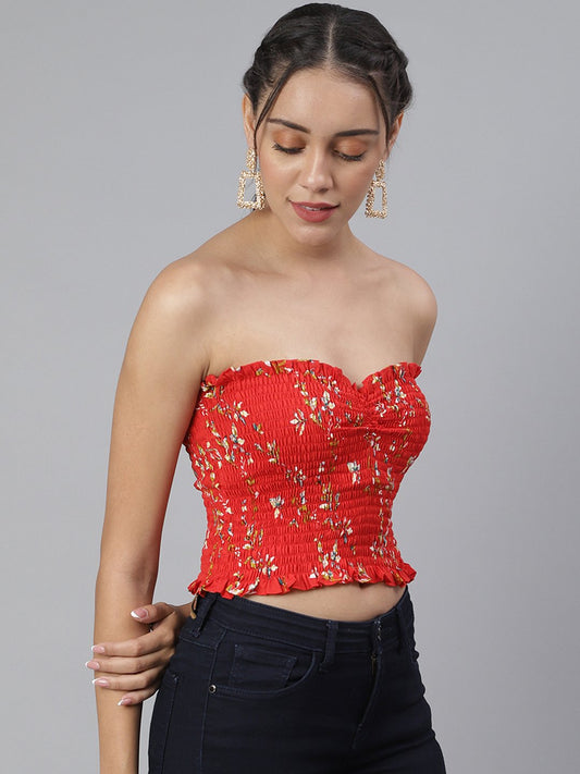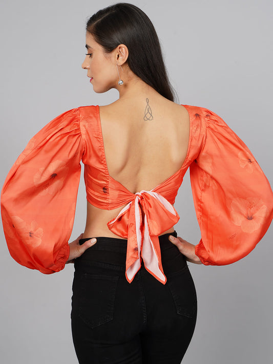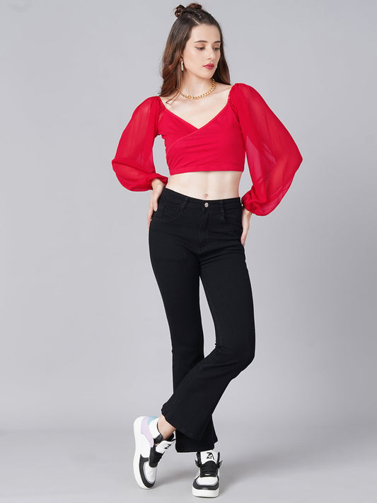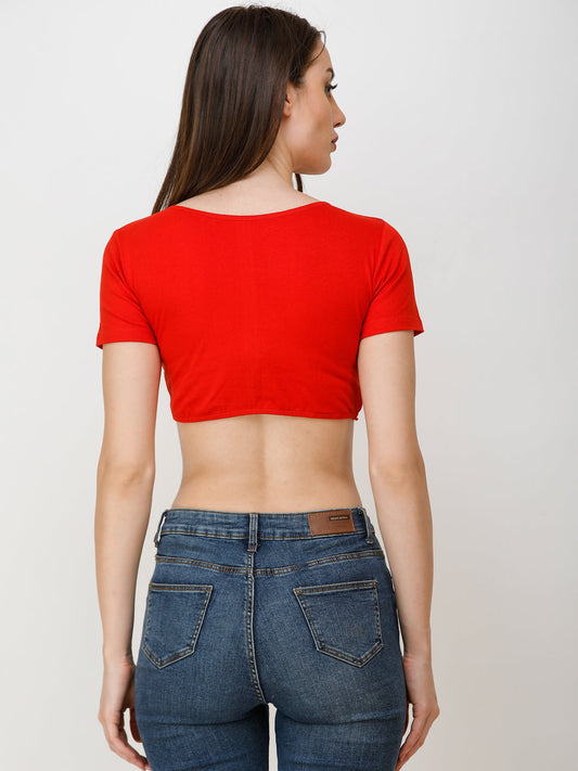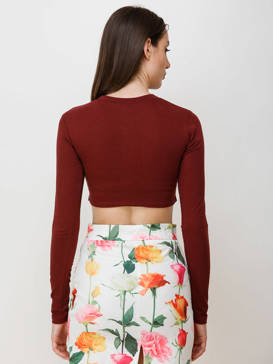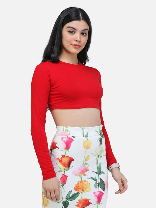 SCORPIUS RED FULL SLEEVE ROUND NECK CROP TOP