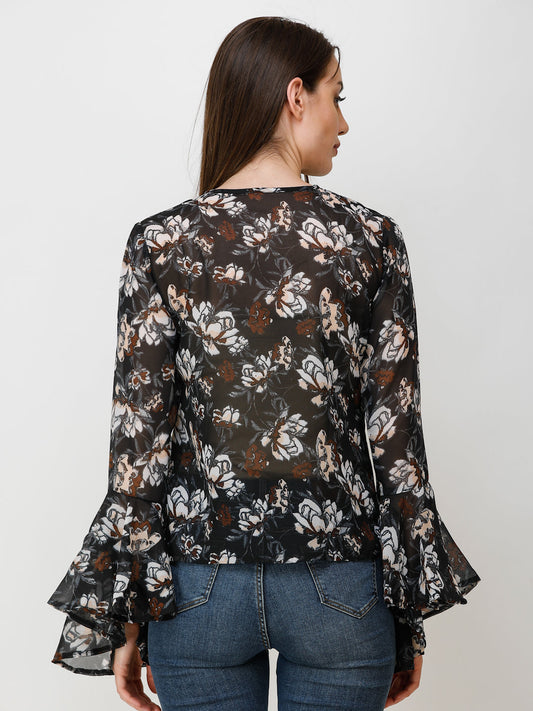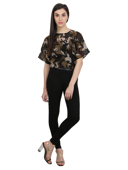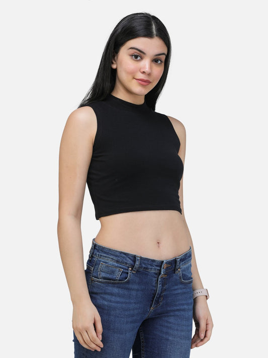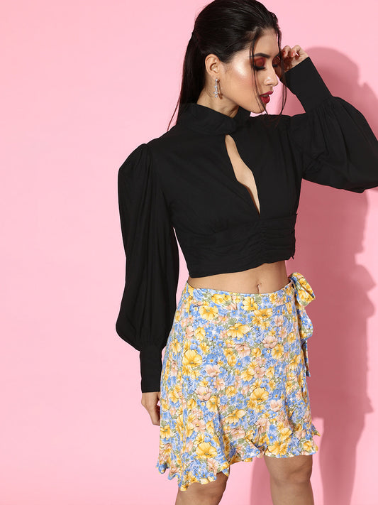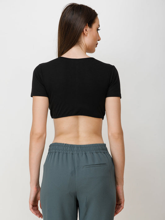 SCORPIUS BLACK CUT SLEEVE CROP TOP
