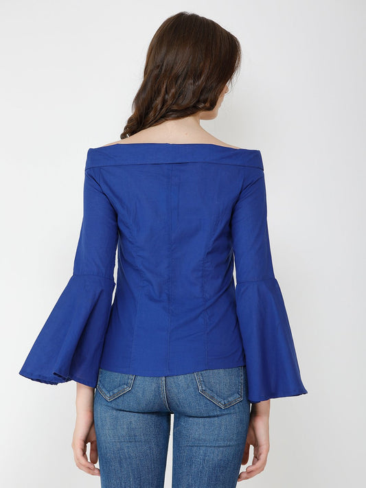 SCORPIUS TEAL FULL SLEEVE HIGH NECK CROP TOP