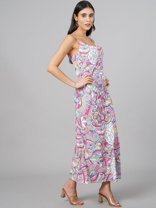 Scorpius Pink & Off-White Printed Straight Midi Skirt