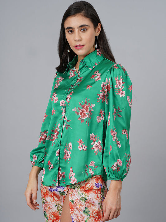 SCORPIUS Satin Green Printed Shirt