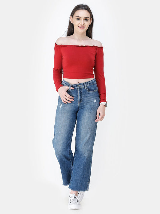 Maroon Solid Crop Top