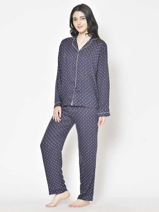 Cation Navy Printed Night Suit