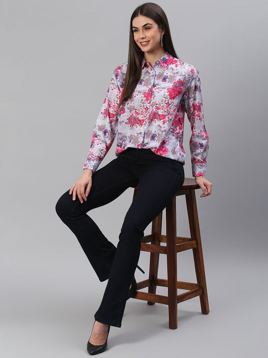 White Pink Floral Print Shirt