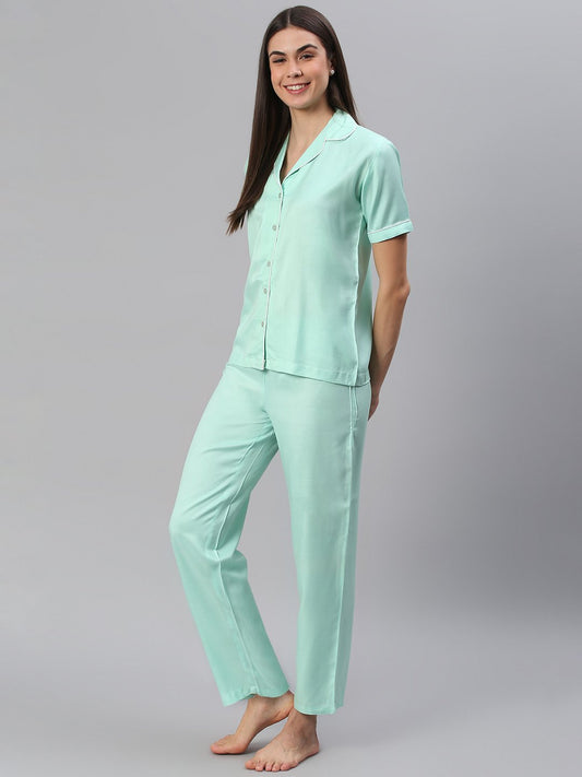 Sold outCation Aqua Solid Night Suit