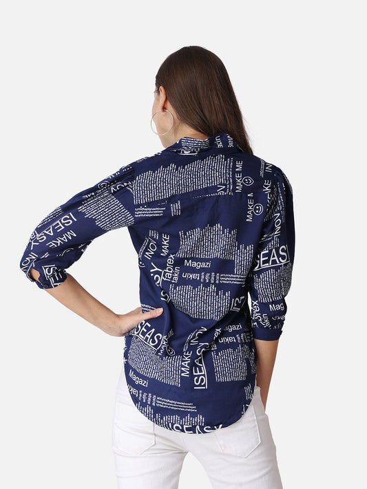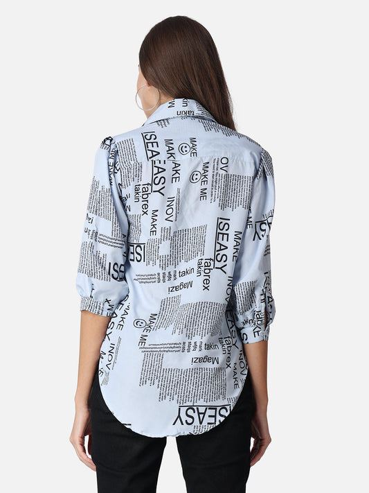 SCORPIUS Typography Blue Printed Casual Shirt