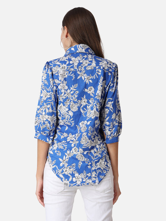 SCORPIUS Blue Floral Printed Casual Shirt