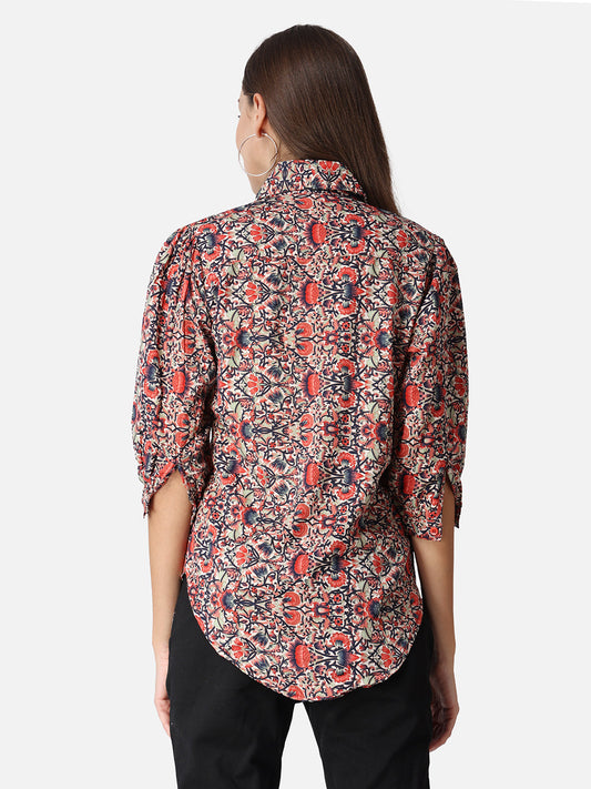 SCORPIUS Women Navy Blue & Red Floral Printed Top