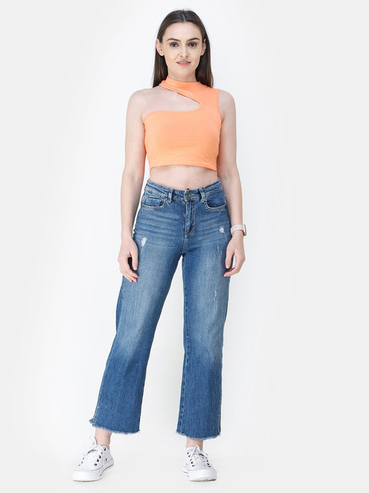 Orange Solid Crop Top