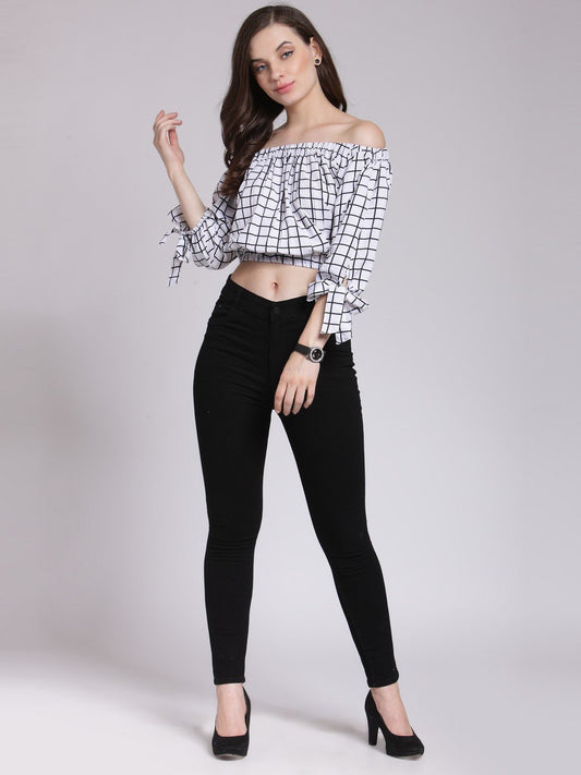 SaleWhite Checkered Top