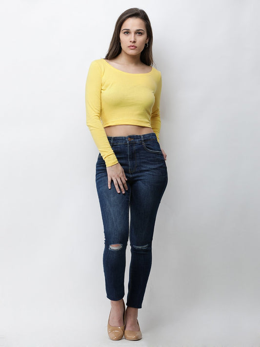 Yellow solid crop top