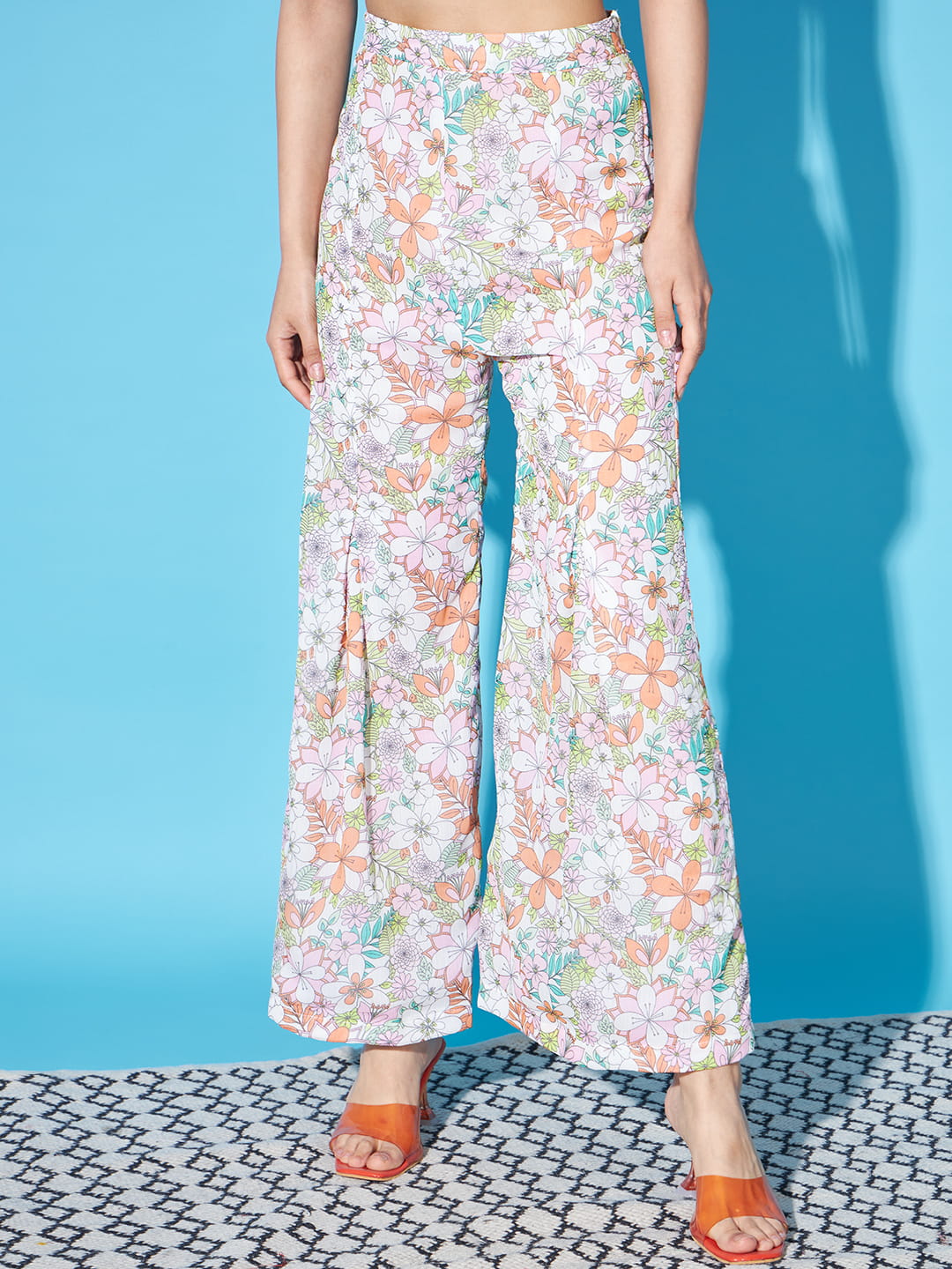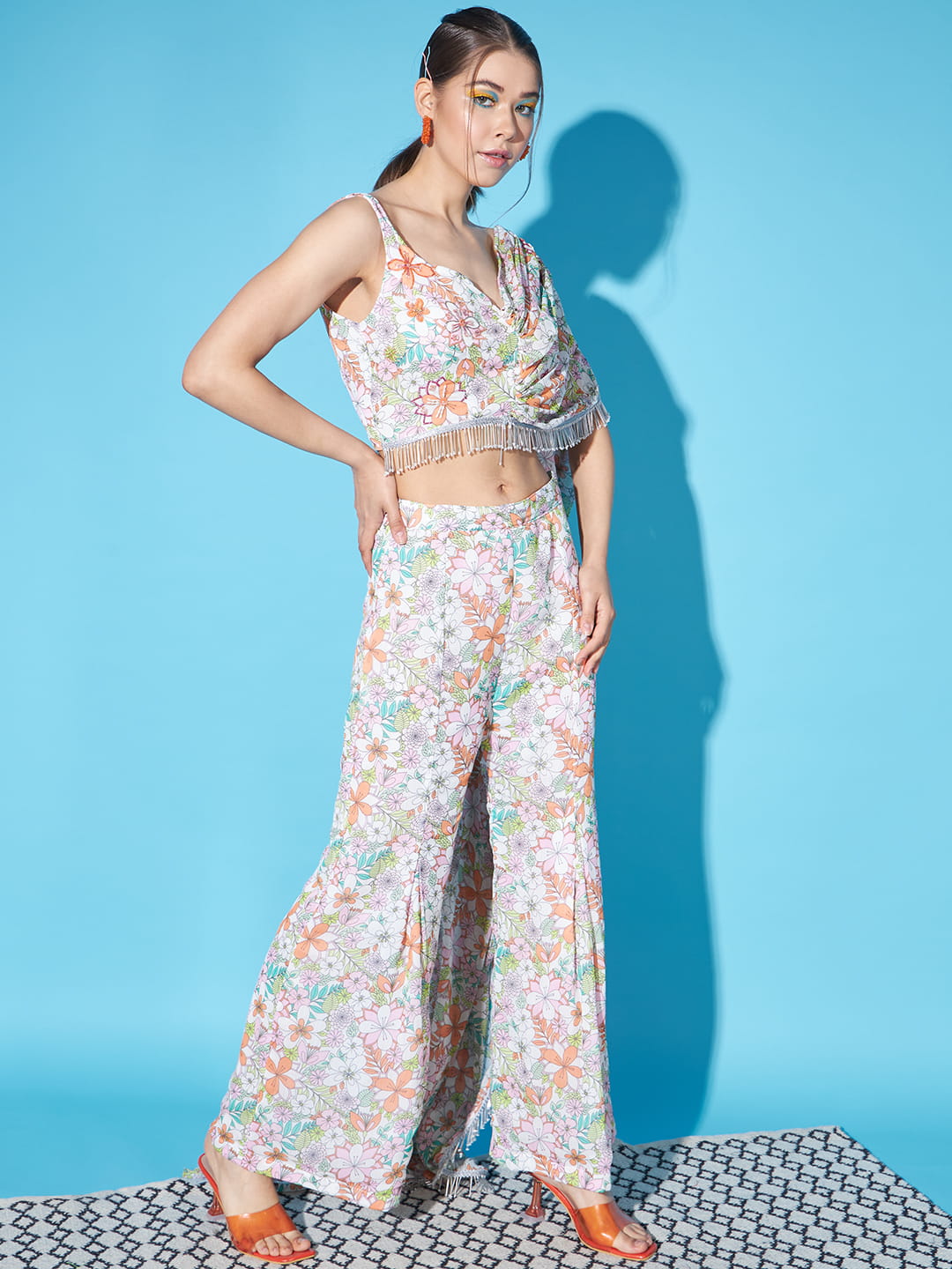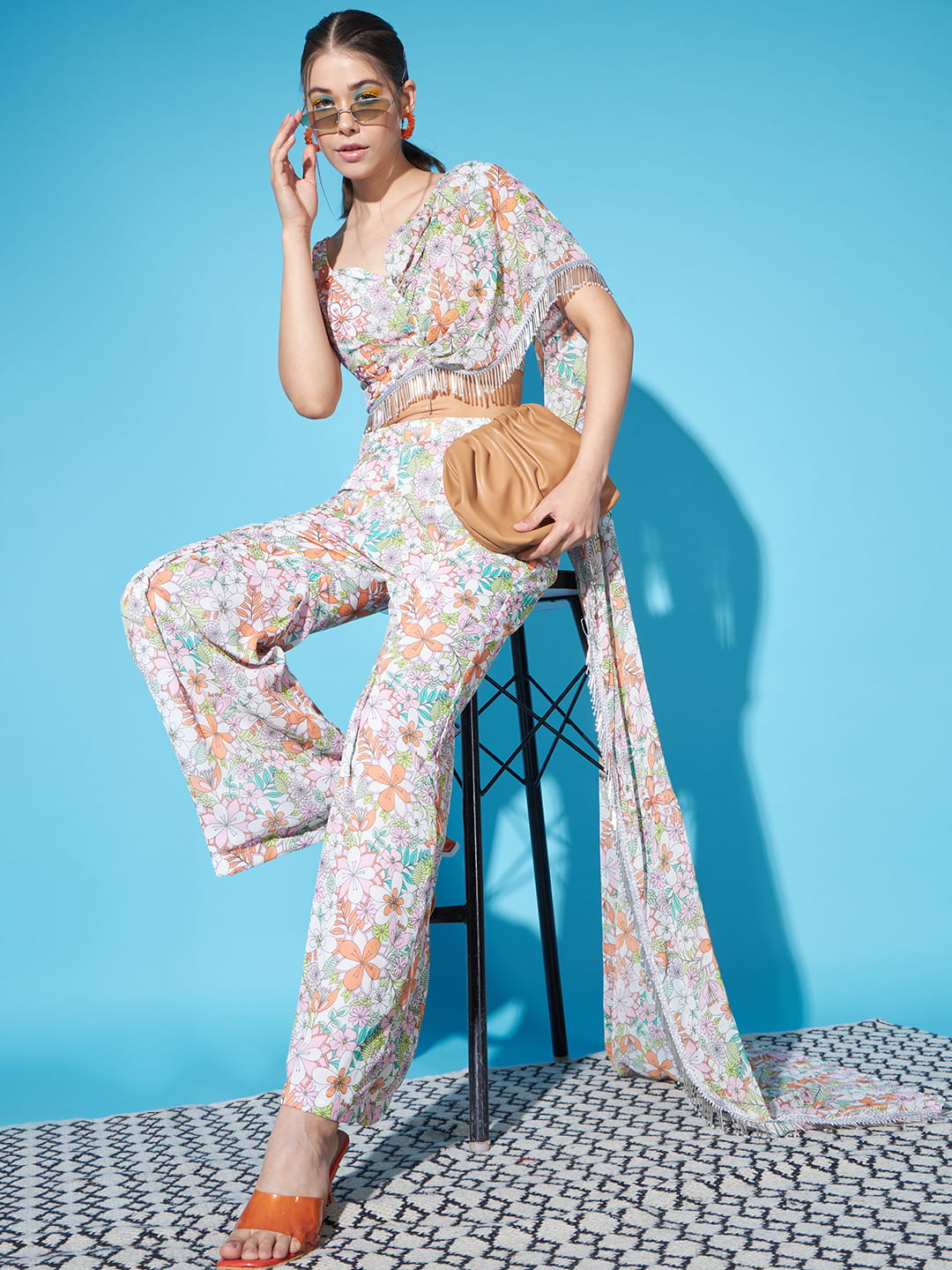 Ethereal Blooms: White Floral Fusion Coord Set in Drape Style | Hues of India